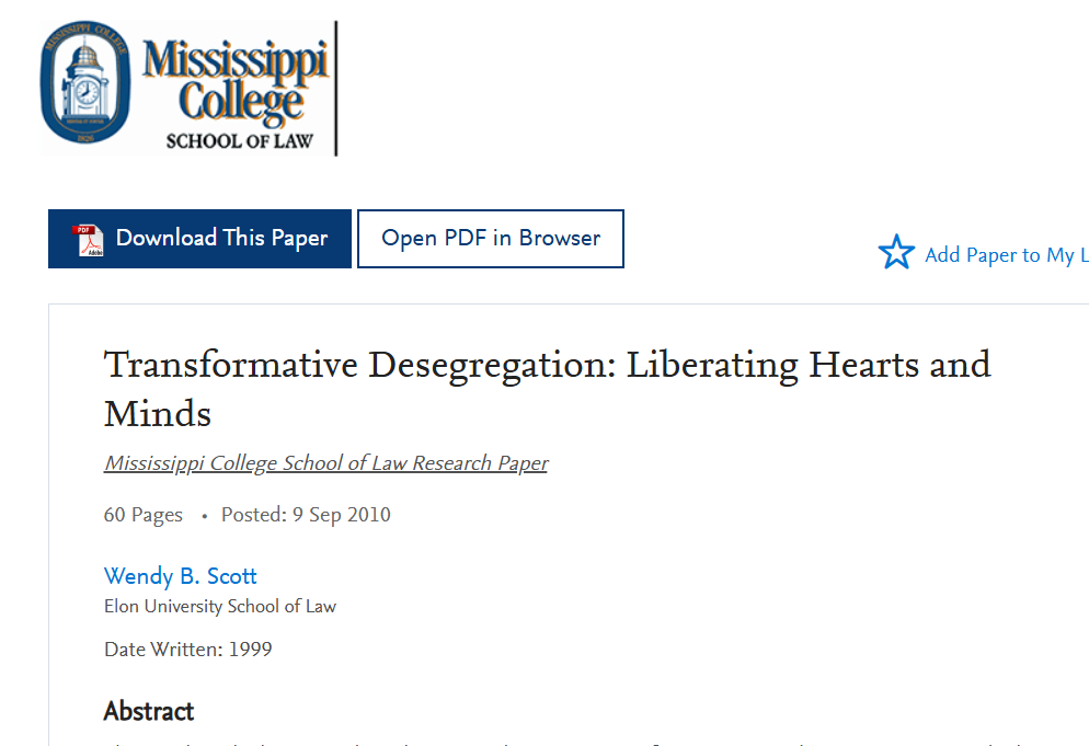 Wendy B. Scott, Transformative Desegregation: Liberating Hearts and Minds |